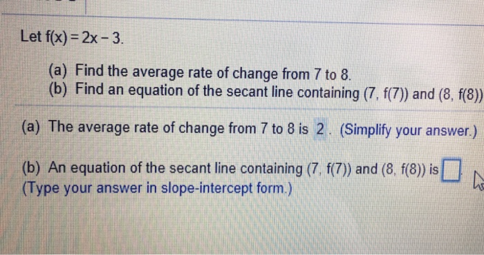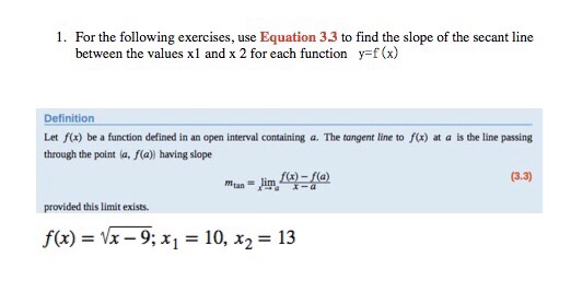 Since a secant line is dened using two points on the graph of ( ), as opposed to a tangent line that requires example we will use the secant method to solve the equation ( ) = 0, where ( ) = 2 − 2 the order of convergence of the secant method can be determined using a result, which we will not. What is the slope of a line between two points on a curve? Secant lines go through two points, while tangent lines meet smoothly with the curve at one point this of course might look awfully daunting to remember. The left side is the slope $m$ (rise/run) of the line between the. A secant line is simply a linear equation and with two given points you can find the equation.